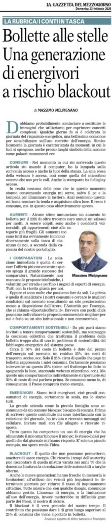 ENERGIVORI. Siamo tutti energivori, cioè grandi consumatori di energia, certamente in scala, ma lo siamo tutti. La grande azienda come la piccola famiglia sono accomunate da un comune bisogno: bisogno di energia. Prima di scrivere questo contributo mi sono interfacciato con la redazione del giornale, ho inviato e ricevuto messaggi sul cellulare, inviato mail con file allegato e ricevuto risposta. Tutto questo ha comportato un uso di energia che ha alimentato il mio smartphone e il mio pc; lo stesso dicasi per quelli che dal giornale mi hanno risposto. È solo un piccolo esempio, ma spero renda l’idea.