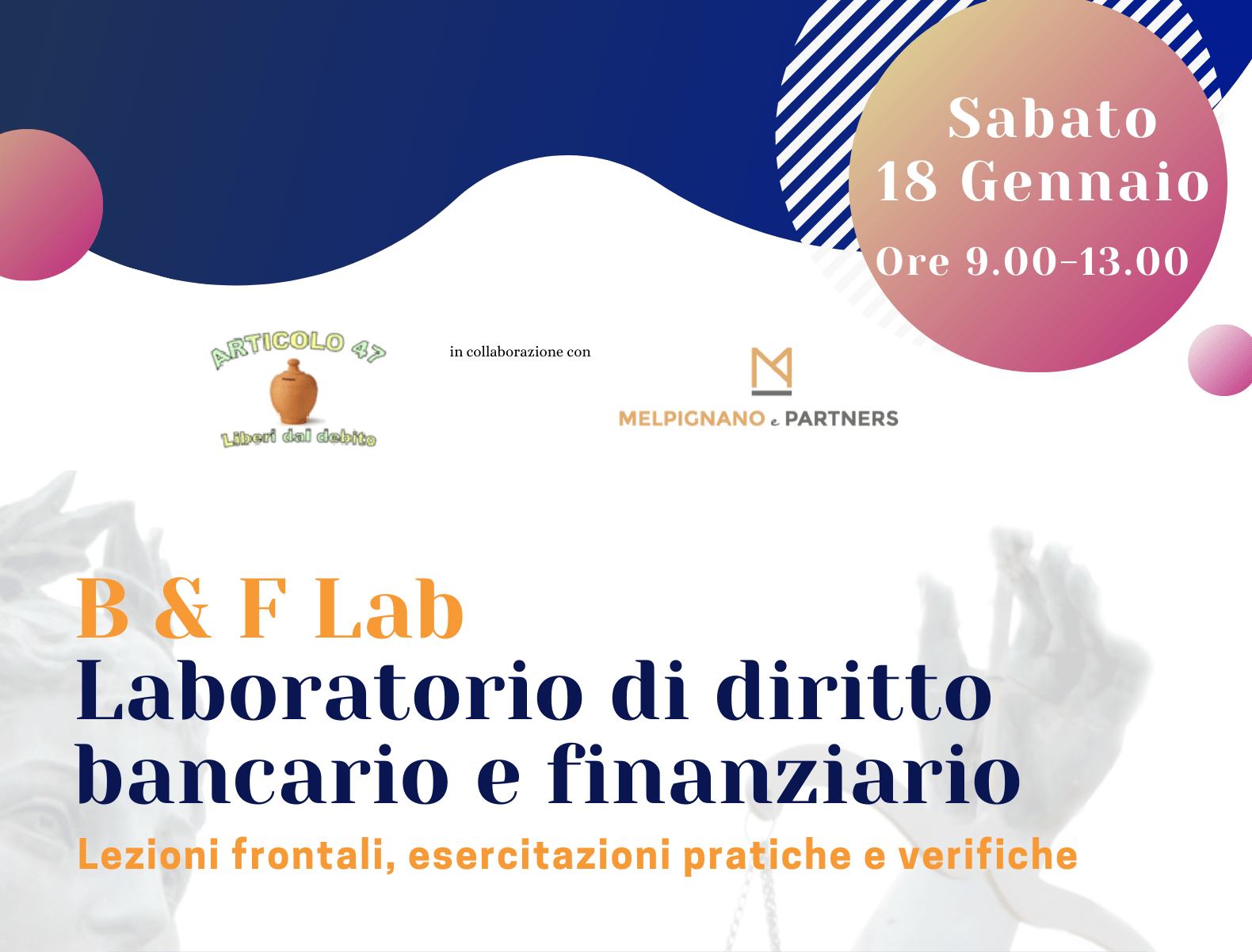 Sabato 18 gennaio 2020 si terrà a Bari il “Laboratorio di diritto bancario e finanziario” su “Interessi moratori e rilevanza ai fini dell’usura: quali scenari all’esame delle Sezioni Unite?“, organizzato dall’ associazione di promozione culturale “Articolo 47 – Liberi dal debito” in collaborazione con lo studio legale Melpignano & Partners.