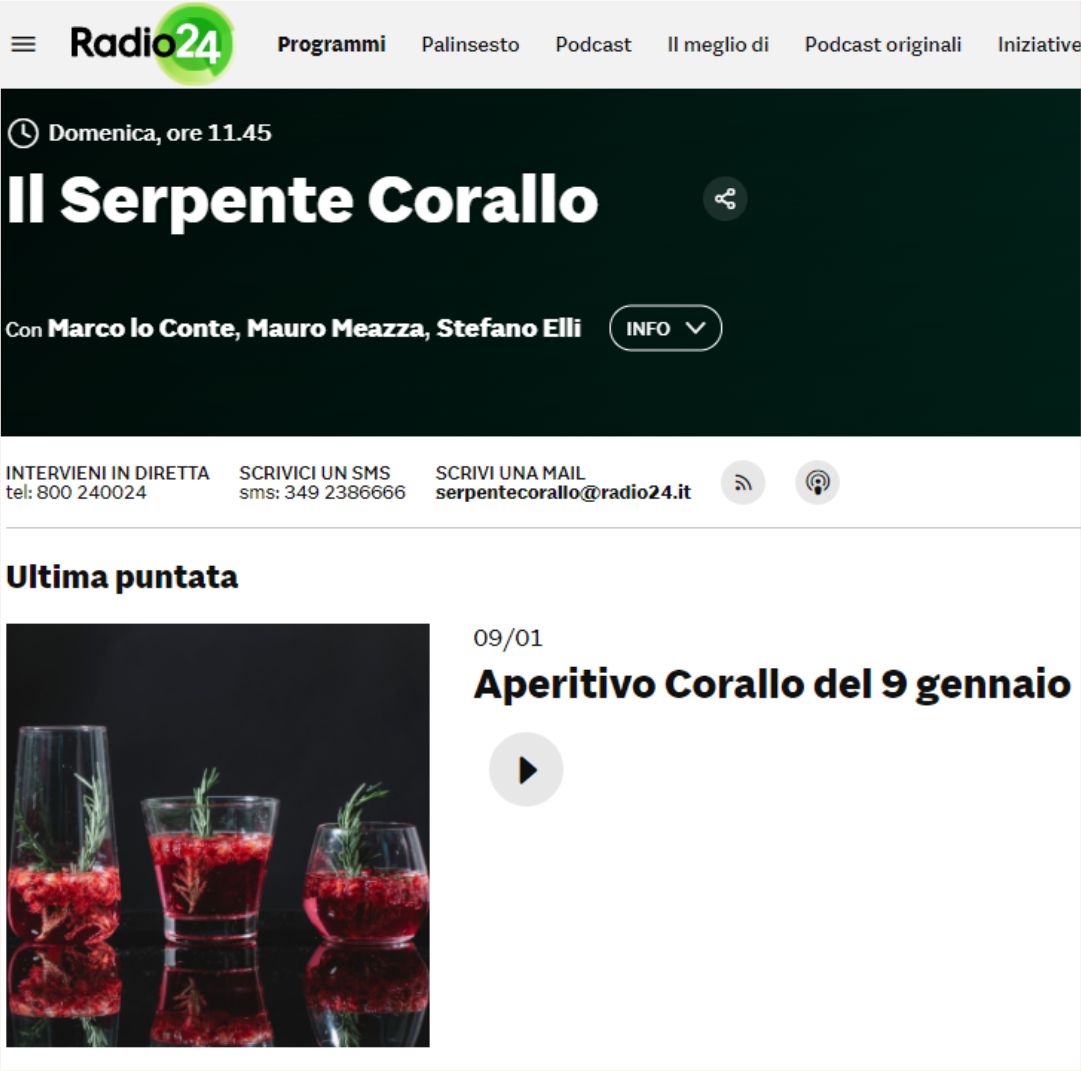 Aperitivo Corallo è un programma di Radio 24 che racconta in modo semiserio di truffe, truffati e truffatori, ovvero quei “Serpenti Corallo” che insidiano i nostri risparmi e la nostra tranquillità. Si mette in guardia da insidie come il phishing, il vishing, il ransomware…